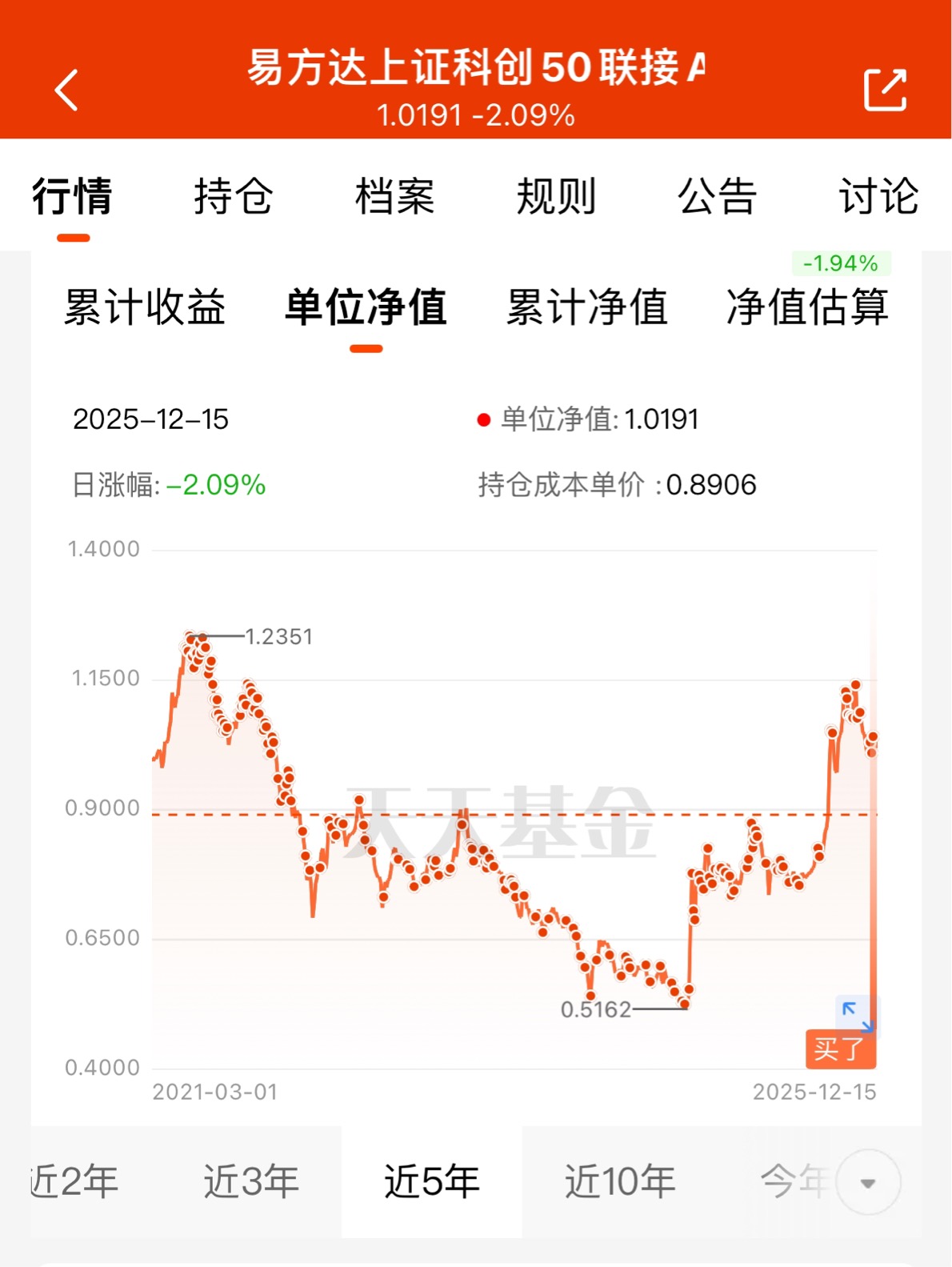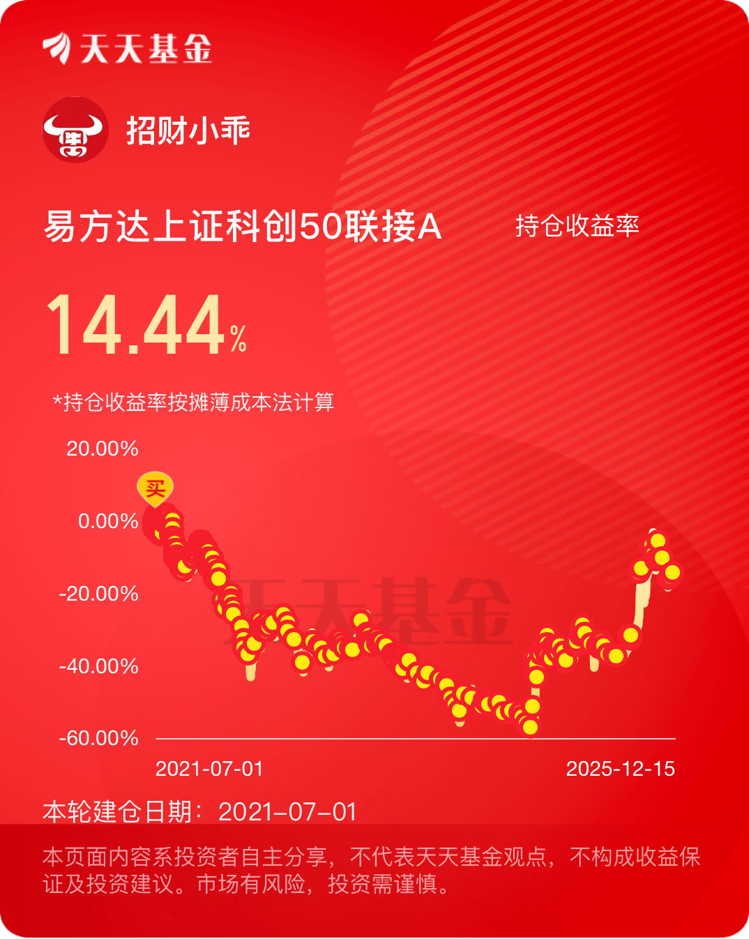 #晒收益# 还相信科技成长吗?一个字:忍!我反正不离场。无波动不定投,期待明年的科创50 $易方达上证科创50联接A$