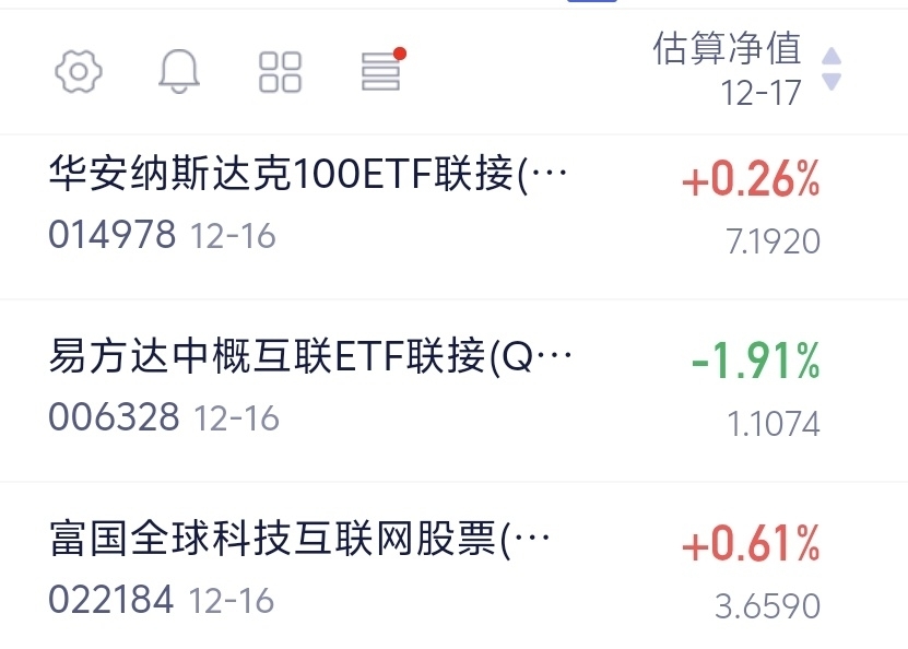 $富国全球科技互联网股票(QDII)C$ 今日估值0.61%,挺不错,它不仅包含美股科技,还有大A科技,今天有望超预期估值,之前入手割肉了有点后悔,今天我再加上,加油哦!