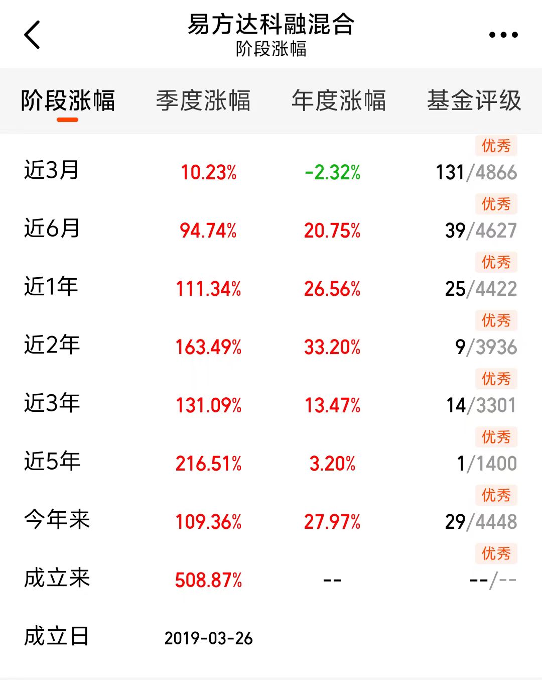 大盘今天表现还不错,三大指数集体上涨,科技等板块回暖上涨,易方达科融混合持仓有科技、新能源和军工等板块,轮动配置,持仓比较均衡一些,经理调仓能力不错,近六个月涨了94.74%,近一年涨了111.34%,成立以来涨幅超500%,业绩不错,看好这个方向,我准备分批布局了!