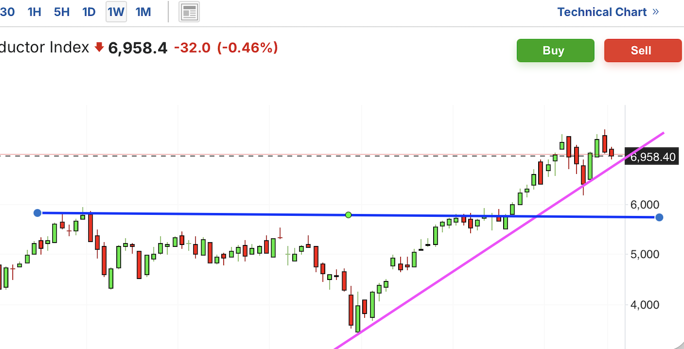 费城半导体指数:该指数中长期保持极为强劲的上升趋势。年内涨幅显著超越美股三大指数。近几日回调幅度高于主要指数,目前逼近中期上涨趋势线。能否守住该关键支撑位,将决定后市的走向。