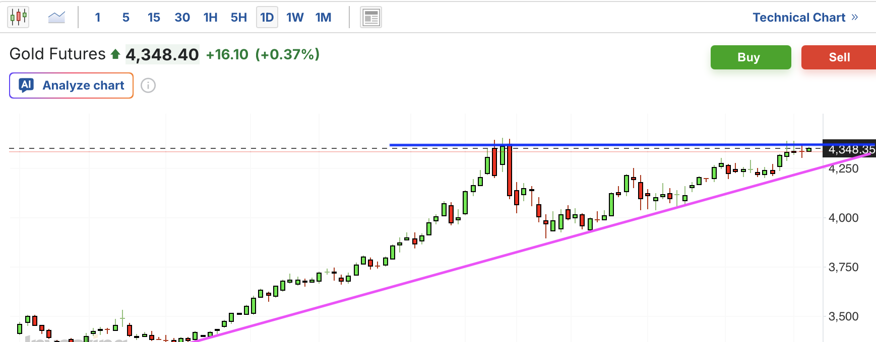 黄金与白银(贵金属):在短暂回撤后成功反转,目前均处于清晰的震荡上行格局。黄金期货继续保持温和上攻,已经逼近最高点压力位。白银期货不断创出新高,在上升通道中强势反弹。