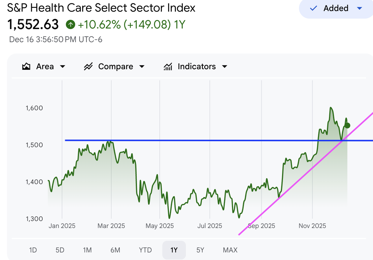 标普健康保健板块:该板块近期转为震荡上行趋势,在大幅飙升后出现回落。虽然前几日曾从关键上涨趋势线止跌反弹,但周二再次受挫下跌,给后市行情带来不确定性。