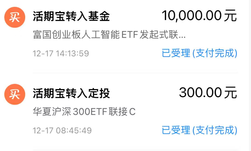 买入10000元$富国创业板人工智能ETF发起式联接C(OTCFUND|024663)$,这是个被动跟踪创业板人工智能指数的产品,主要布局的ai技术、算法开发这类赛道,样本股都是创业板中的企业,个股每天20%涨跌幅使产品的弹性更大。近一个月富国富国创业板人工智能涨幅达到了11.55%,而中证人工智能指数涨幅不到2%,目前科技称王的行情下,选择创业板中的指数来配置优势更大。最近几个交易日科技板块在调整,今天整体开始修复性反弹,很适合低吸,熙凤继续来加一些仓位。