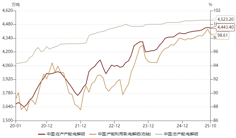 【图9 国内电解铝产能及利用率】