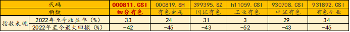 1、全面布局各大金属板块:中证细分有色金属产业主题指数全面覆盖金、铜、铝、锂、稀土等子板块,有望全面受益于有色超级周期。