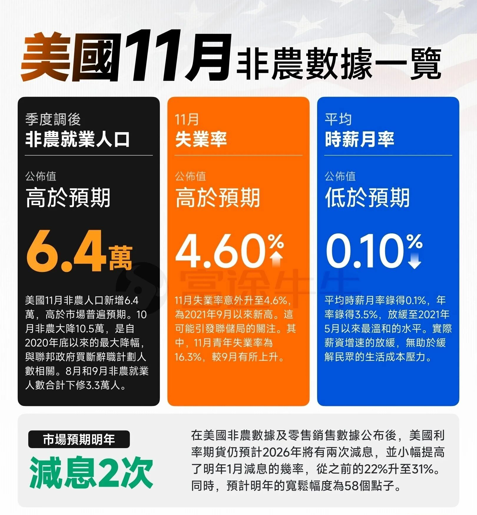 昨天晚上11月的美国非农数据出来了,总体好坏参半,市场反应平淡。