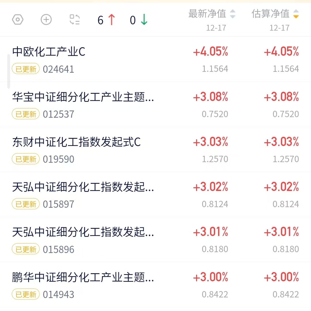 我感觉最近的回暖走势还是蛮不错的,现如今的市场行情,我对化工赛道的信心还是蛮强的,我看$中欧化工产业混合发起C(OTCFUND|024641)$今天收涨4.05%,超额收益还是很香的~