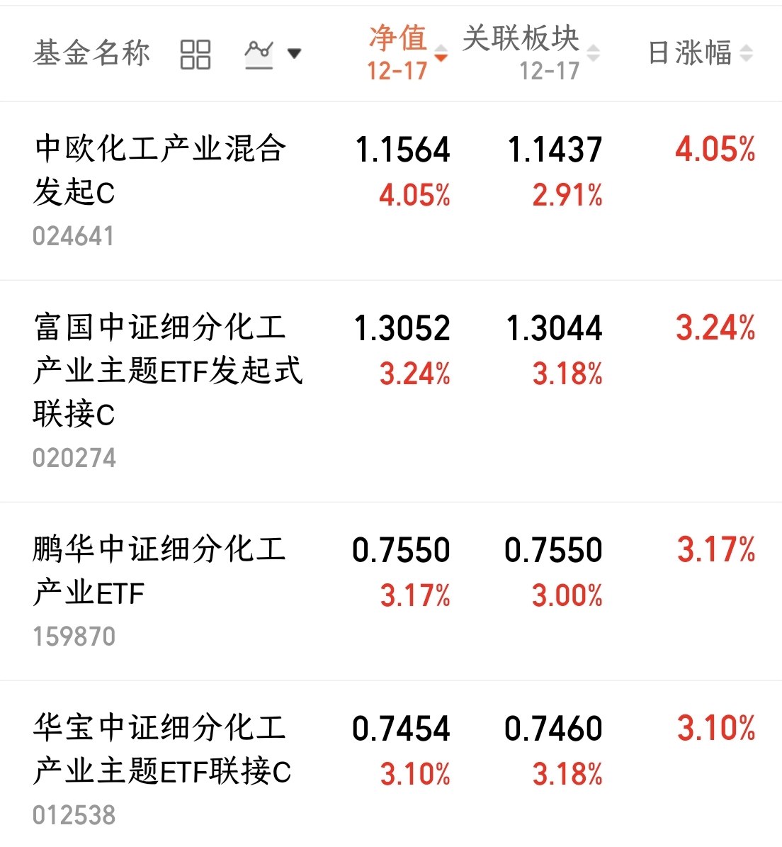 $中欧化工产业混合发起C(OTCFUND|024641)$专注化工产业,行业集中配置度高,今日上涨4.05%