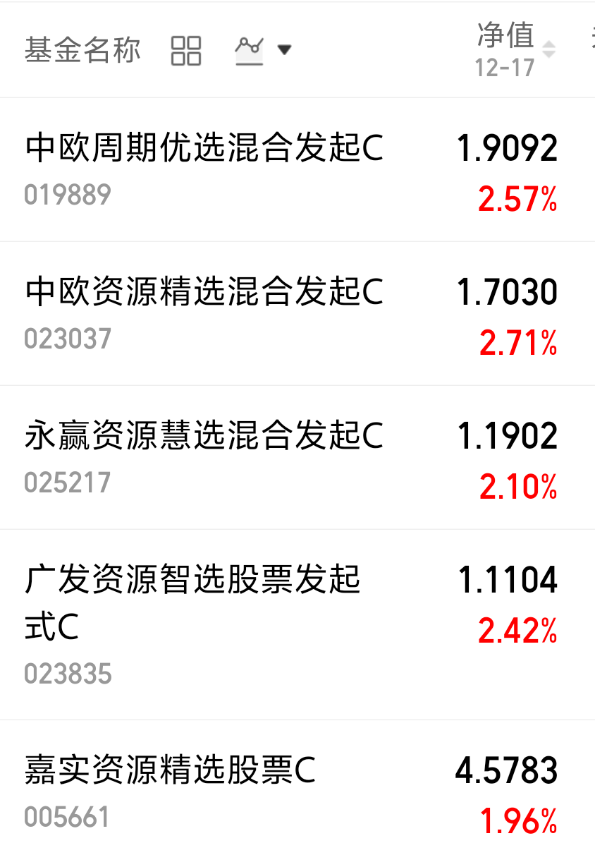 $嘉实资源精选股票C(OTCFUND|005661)$今天涨了1.96%