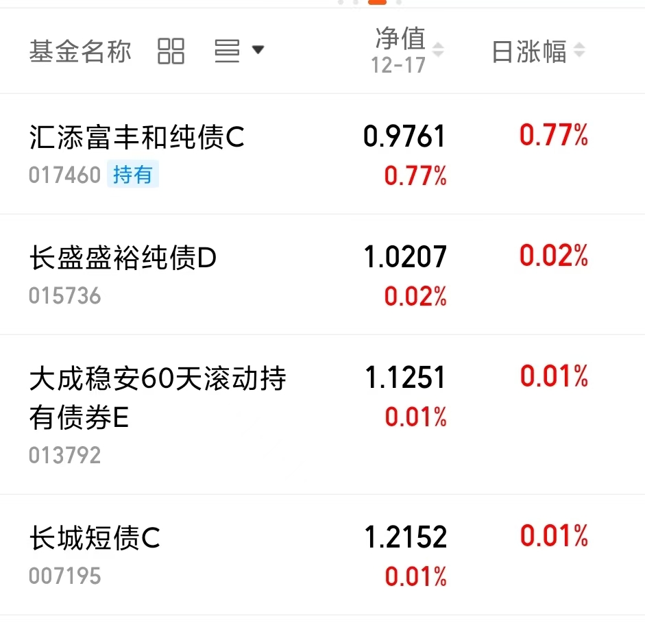 今天市场行情回暖债也开始收蛋咯~咱就说大家都收蛋了吗~我看$汇添富丰和纯债C(OTCFUND|017460)$今天收涨77个蛋,30CM大长腿债基,对标30年超长利率债属实心动了~
