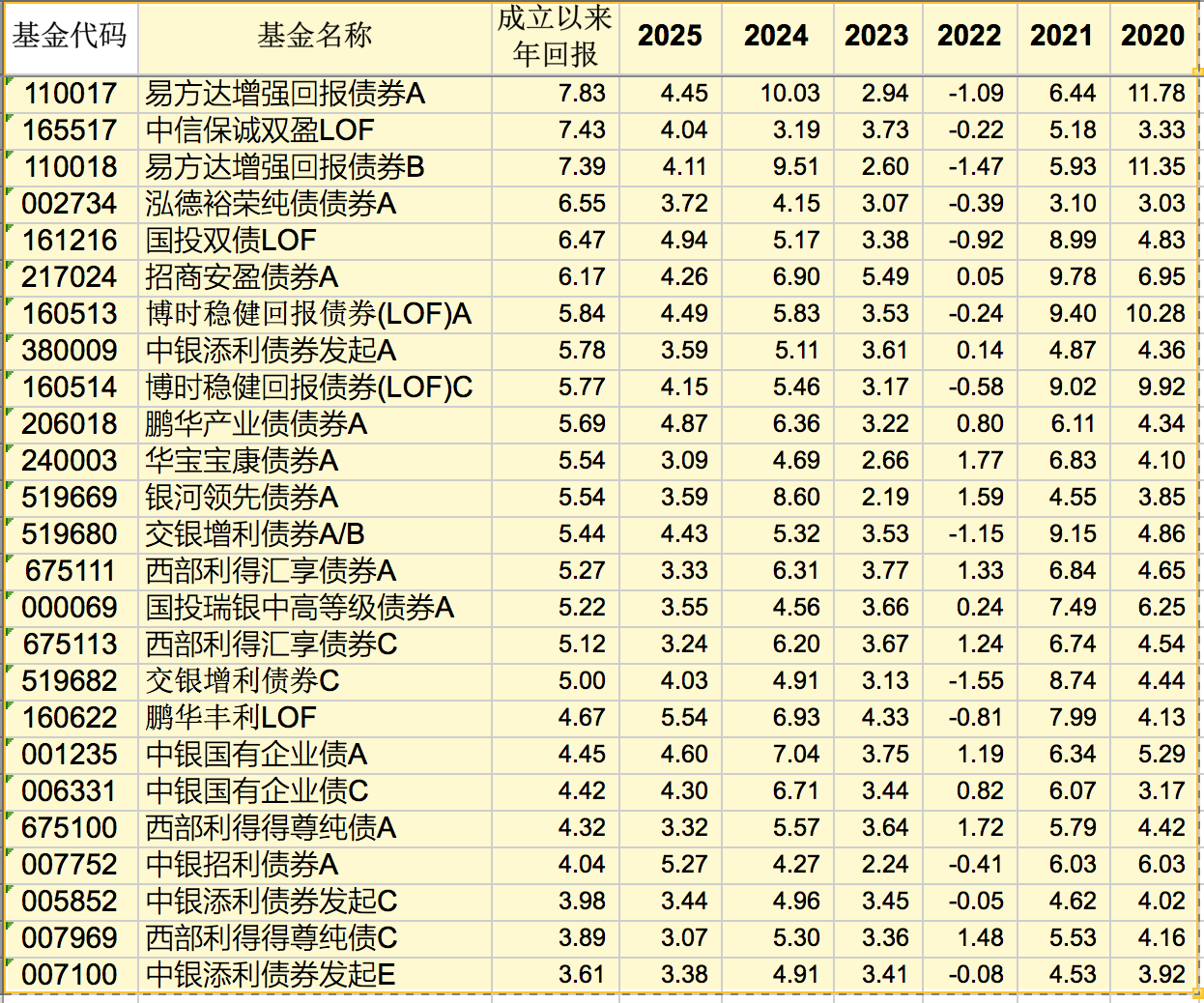 $易方达增强回报债券B(OTCFUND|110018)$$博时稳健回报债券(LOF)A(OTCFUND|160513)$$招商安盈债券A(OTCFUND|217024)$$招商安盈债券C(OTCFUND|012233)$$鹏华丰利债券(LOF)A(OTCFUND|160622)$$鹏华丰利债券(LOF)C(OTCFUND|017820)$