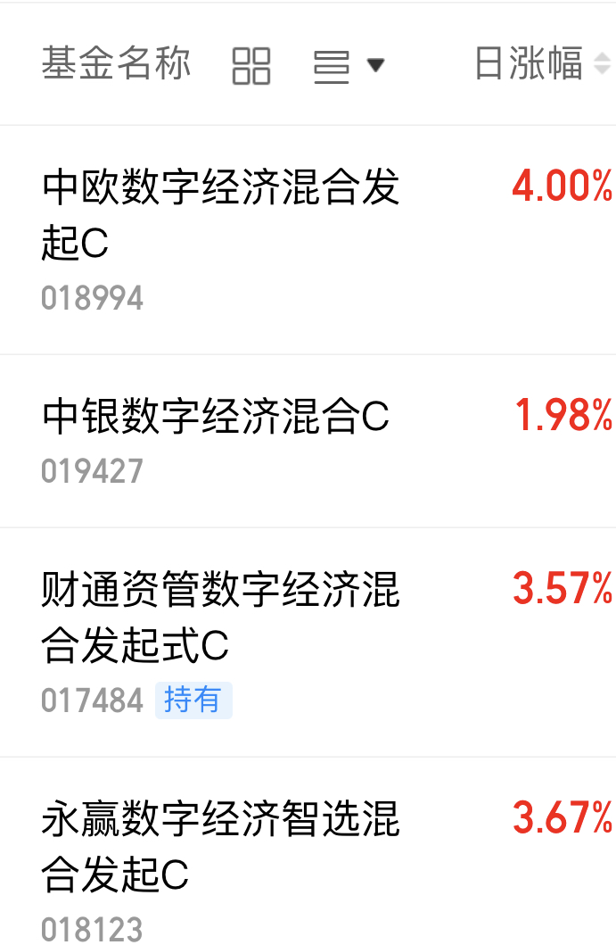 $中欧数字经济混合发起C(OTCFUND|018994)$今晚上涨4%