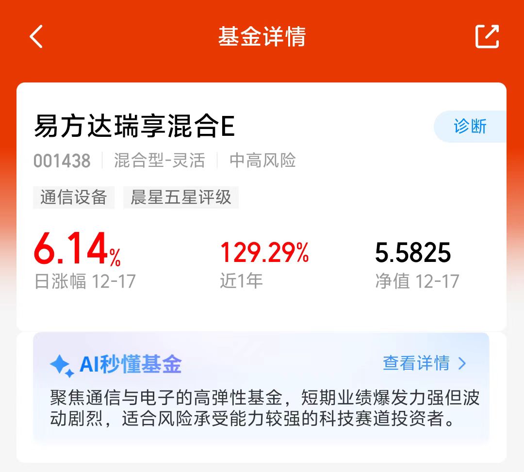 市场近期波动加剧,大盘今天震荡调整,三大指数涨跌不一,CPO板块今天回调了,这个方向长期来看发展空间还很大,易方达瑞享混合E昨天大涨6.14%,近一个月涨了21.90%,近六个月涨了95.19%,成立以来涨幅超400%,看好这个方向,我准备分批布局!