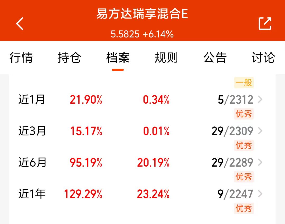 大盘今天震荡调整,三大指数涨跌不一,CPO板块今天回调了,易方达瑞享混合E昨天大涨6.14%,近一个月涨了21.90%,近六个月涨了95.19%,成立以来涨幅超400%,已经翻了四倍了,看好这个方向,我准备分批布局!