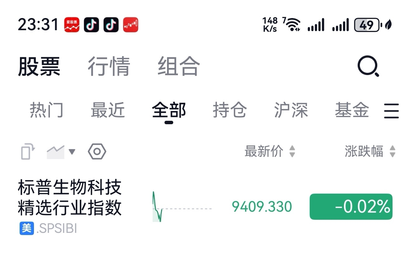 与在目前,观察标普生物科技指数是微跌-0.02%。