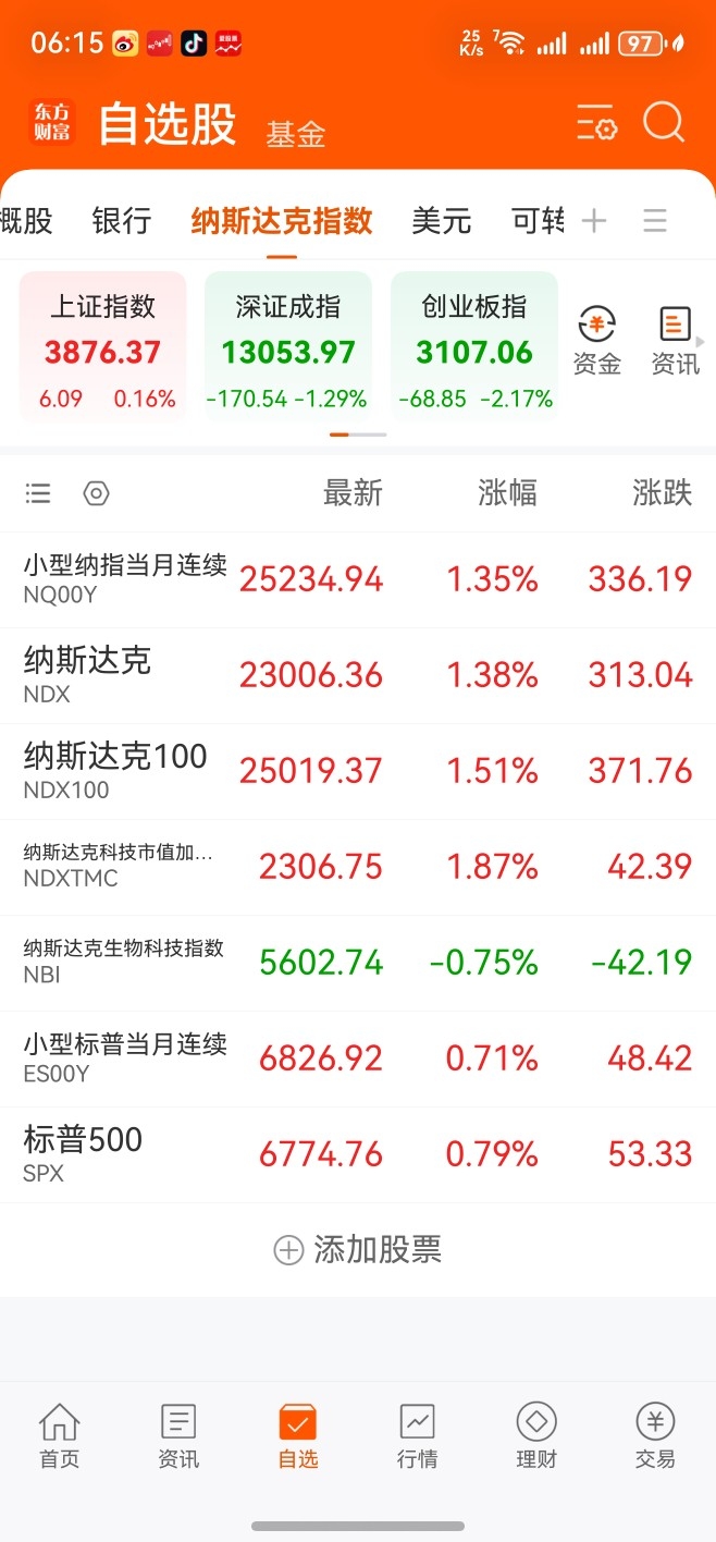 在今天早上,观察美股纳斯达克100指数、纳斯达克科技市值加权指数,在昨天收盘分别