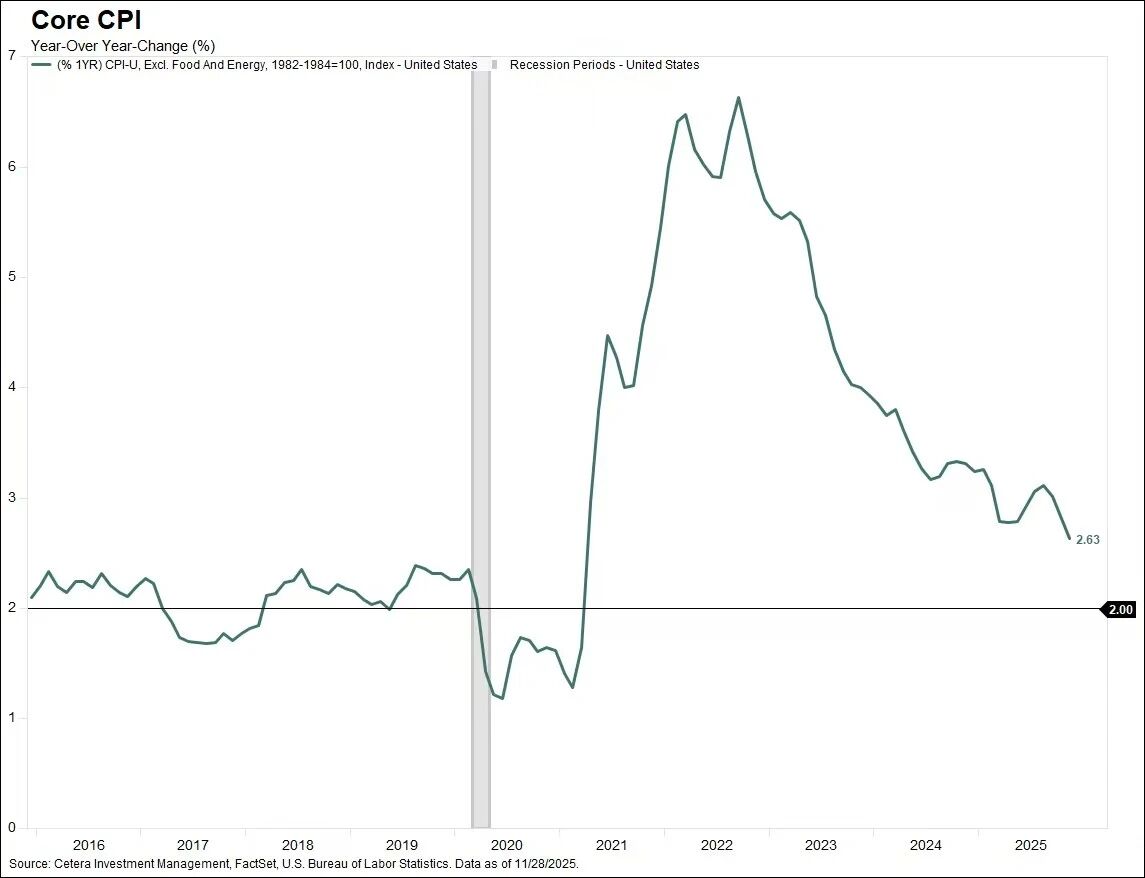 由于前期政府停摆,因此此前10月的通胀数据缺席,而昨晚公布的11月CPI数据,是2个月以来的首次报告。