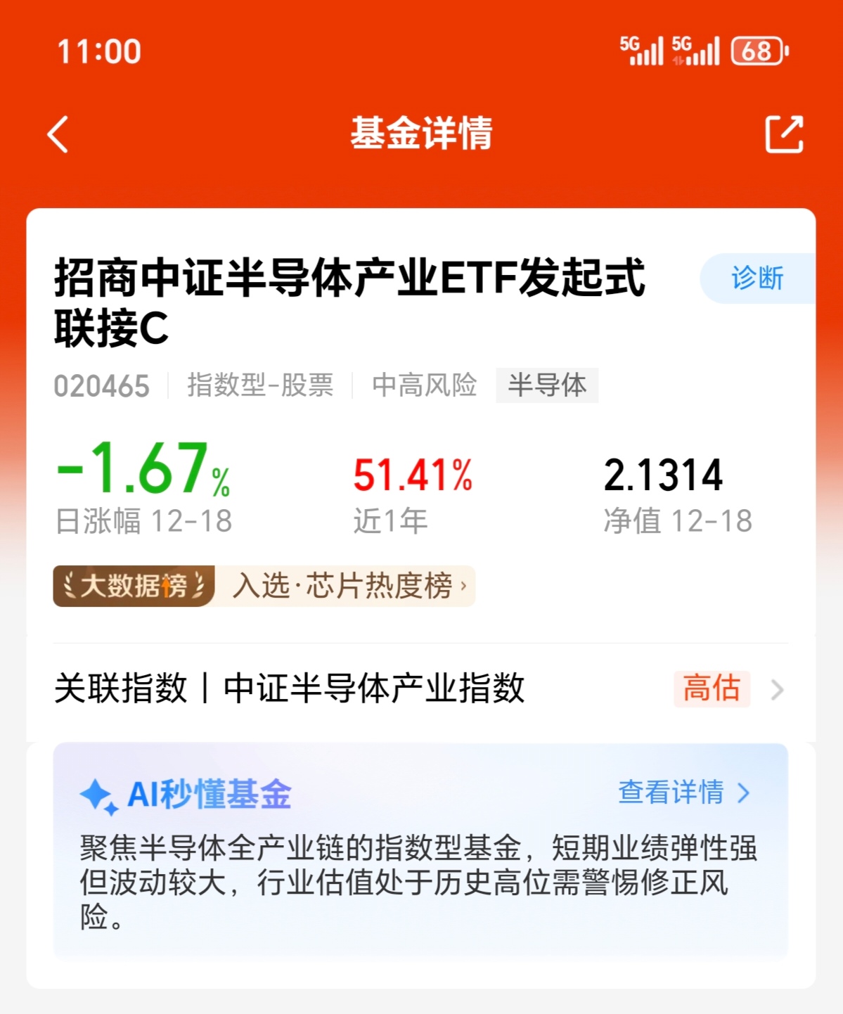 今日大盘行情迎来反弹回暖,三大指数稳定上行,同时半导体盘中拉升涨超至1%,产业链热度开启回升,机构也在看好半导体设备的投资机遇,进一步强化了市场对明年半导体行情的信心,其中$招商中证半导体产业ETF发起式联接C(OTCFUND|020465)$聚焦半导体全产业链,近一年涨超51.41%,而在当下史无前例的AI基建热浪与传统芯片的需求复利的合力下,芯片股的“长期牛市逻辑”仍然始终未变,我也将长期看好这一赛道啦!