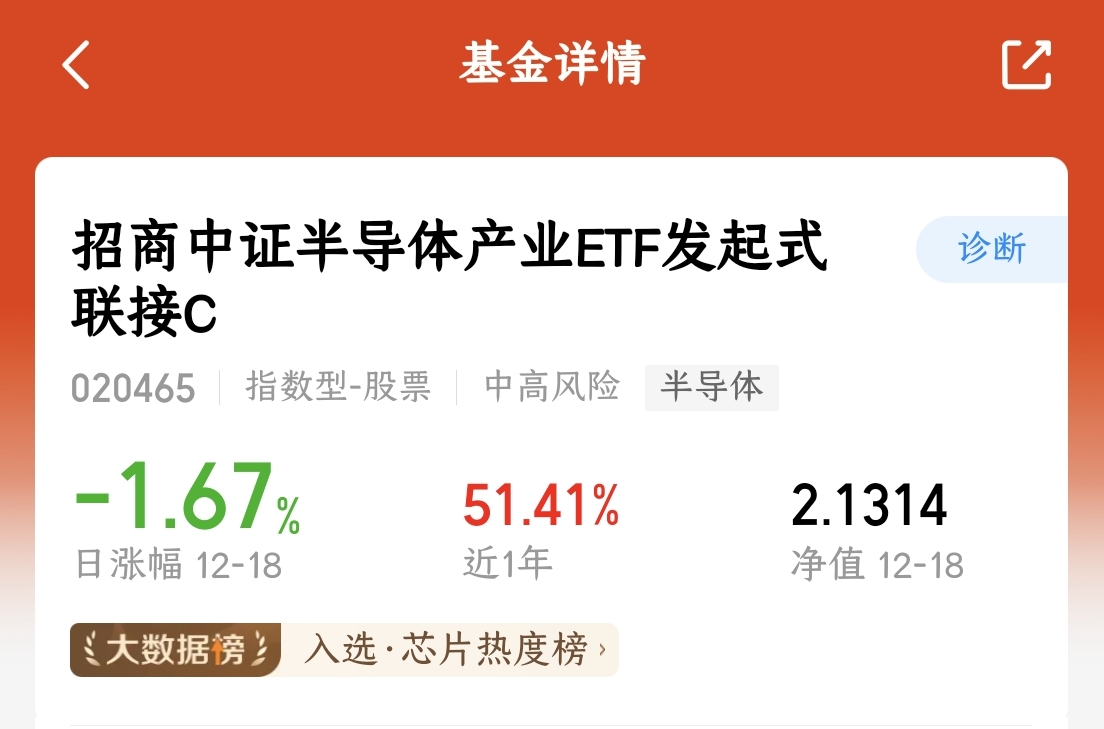 $招商中证半导体产业ETF发起式联接C(OTCFUND|020465)$近一年涨幅51.41%,表现不错,继续加仓了!