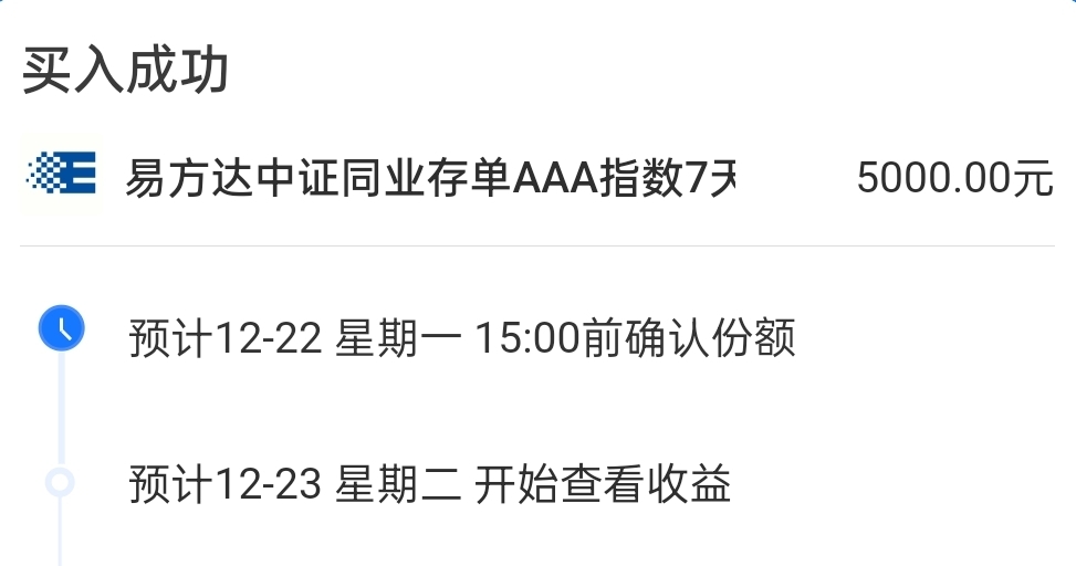 $易方达中证同业存单AAA指数7天持有$ +5000元!