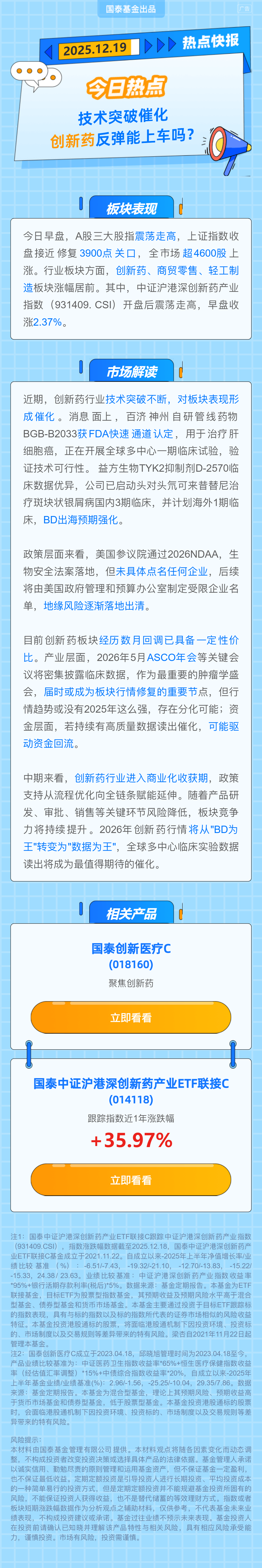 $国泰创新医疗混合发起C(OTCFUND|018160)$$国泰创新药ETF联接C(OTCFUND|014118)$