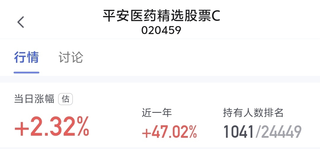 $平安医药精选股票C$ 今日估值2.32%,挺不错,医疗行情开始好起来,继续加油