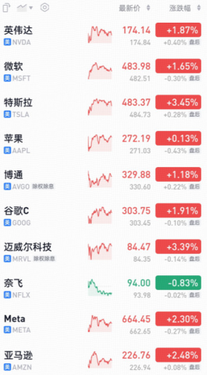【重仓涨跌】昨日华宝纳斯达克精选前十大重仓股9涨1跌,美元兑人民币中间价↑0.01%。(重仓股涨跌情况仅供参考,不代表当前基金业绩表现,还请以每日更新的实际基金净值为准)