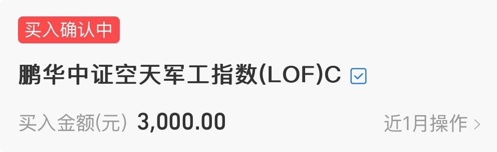 最近行情轮动到航空,军工板块迎来高光时刻!小皮前期的鹏华中证空天军工仓位,昨天成功吃大肉,验证了选择!它的持仓高纯度:聚焦航天航空、国防军工、军工电子,中航沈飞、航发动力等龙头集结。短期弹性十足,行情一来,领先起飞!近1年12.84%的收益率,军工行业有着成长和防御属性,国产替代与科技赋能下,空天一体化趋势明确,而且当前指数处于近3年低位,PE分位值不足20%,技术面回踩20日均线后企稳回升,小皮今天分批上车,再上一把仓位!$鹏华空天军工指数(LOF)C$