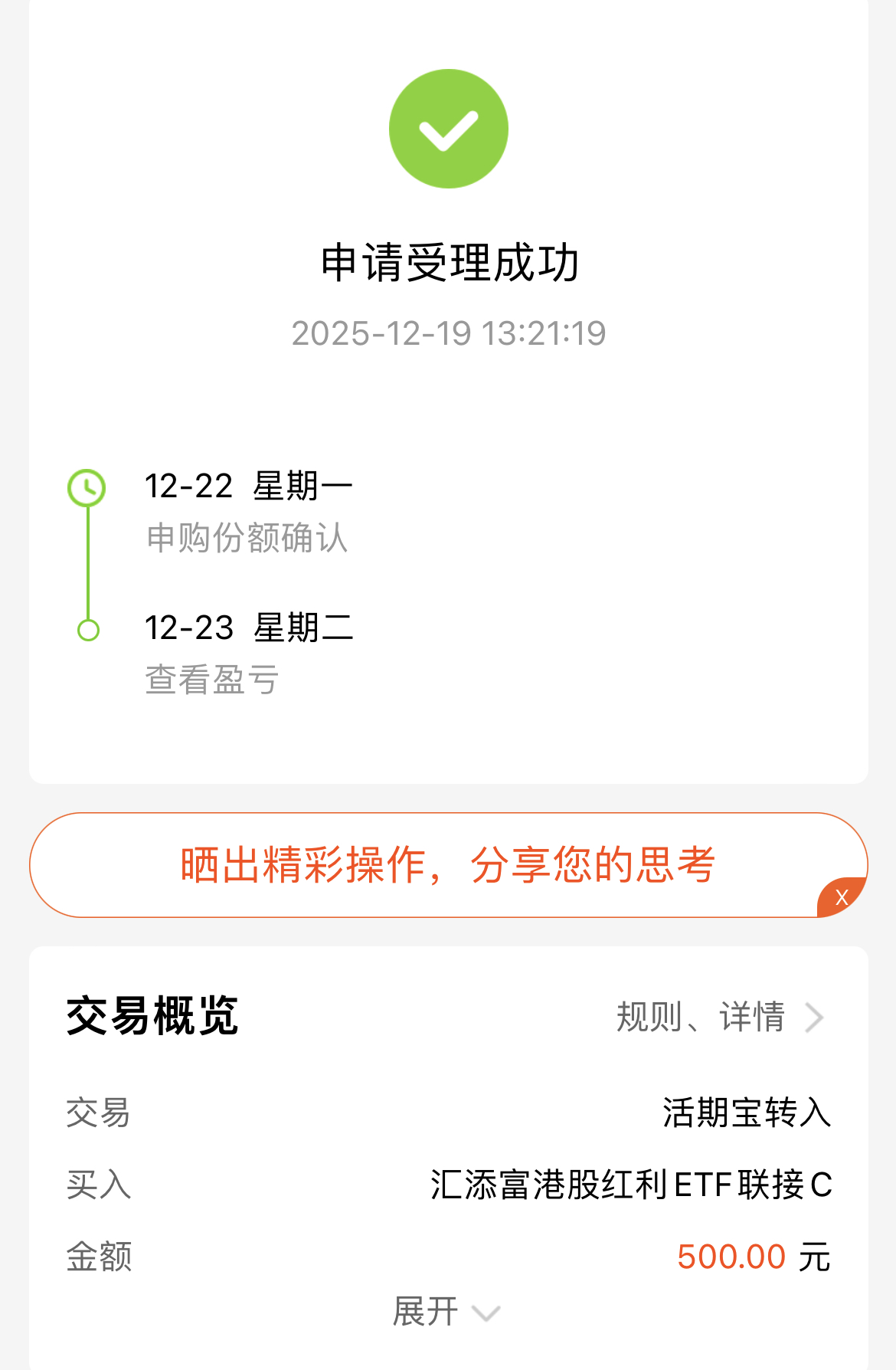 现在板块估值跌到历史低位,股息率不光比A股高,在全球主要市场里也能排前列,又抗跌还有反弹空间。这只ETF联接基金紧紧跟着港股红利指数走,能把估值修复和股息收益都把握住,我也分批布局起来,耐心等待反弹行情啦!$嘉实沪深300红利低波动ETF联接A(OTCFUND|007605)$$摩根标普港股通低波红利指数C(OTCFUND|005052)$#2025年 你的投资战绩如何?#