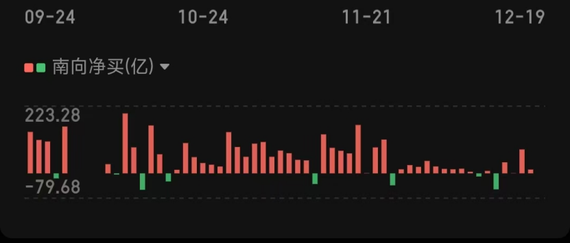 南下资金:本周交易净流入分别为36.54亿、0.82亿、79.09亿、12.57亿、33.71亿,总计净流入162.74亿港元。