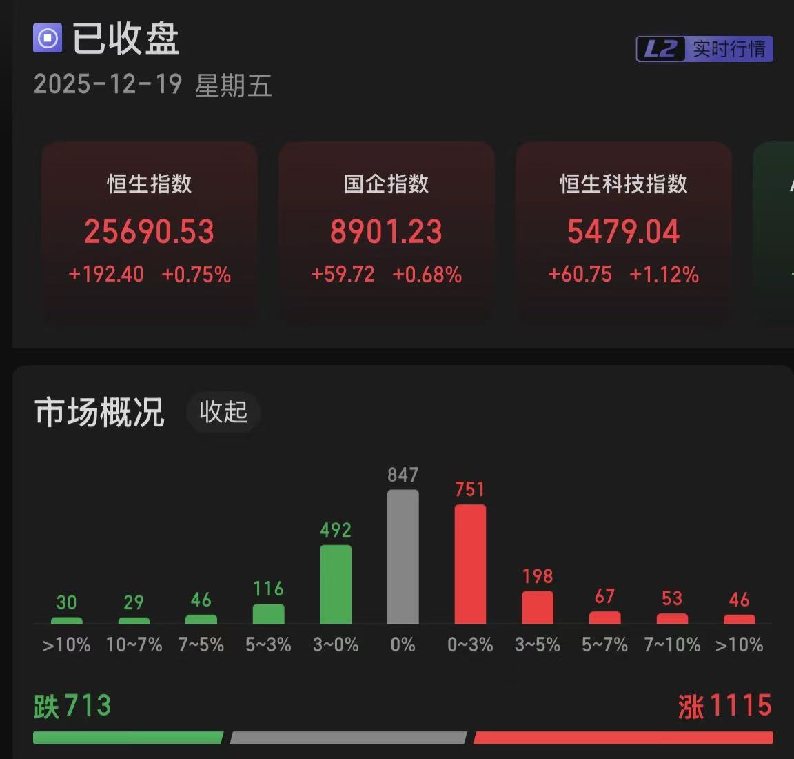 恒生指数上涨0.75%,国企指数上涨0.68%,恒生科技指数上涨1.12%。1115只个股上涨,713只个股下跌。南向资金,净流入33.71亿港元。