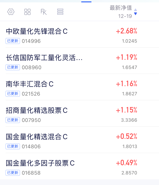 今天股市随着指数的高开高走,整体行情迎来一波反弹,从盘面来看,中小盘量化基涨幅靠前,具体来看相关基的净值更新概况: