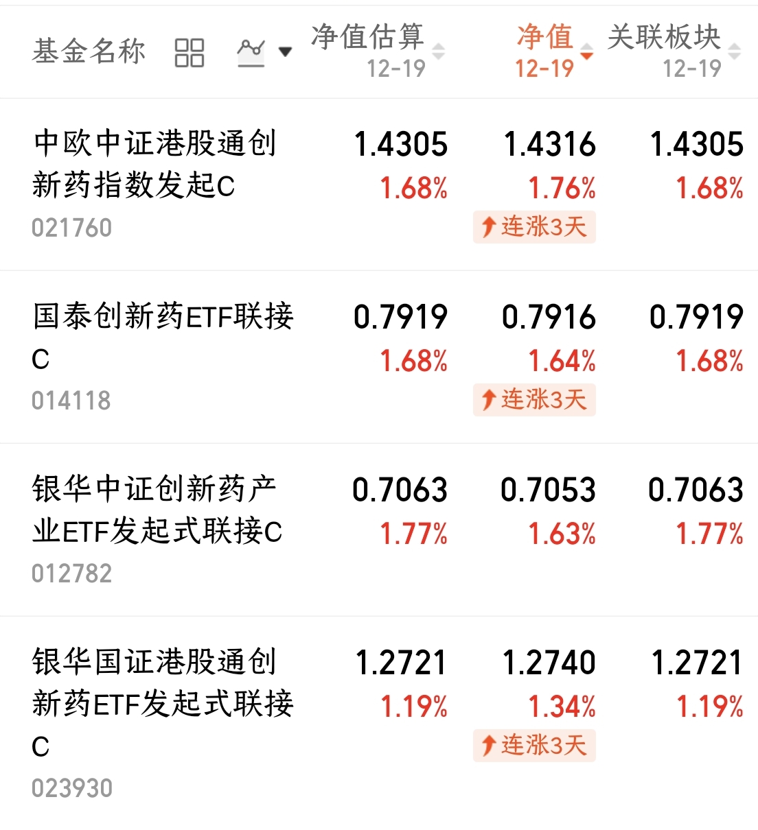 $银华国证港股通创新药ETF发起式联接C(OTCFUND|023930)$今日上涨1.34%