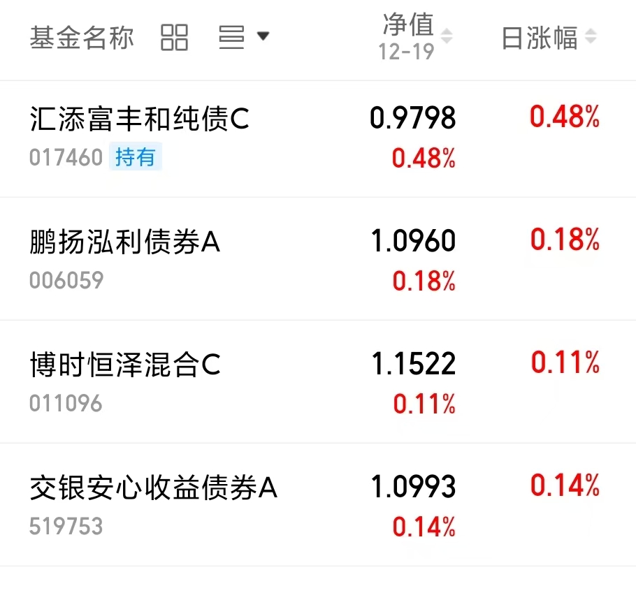 $鹏扬泓利债券A(OTCFUND|006059)$今天收涨18个蛋。