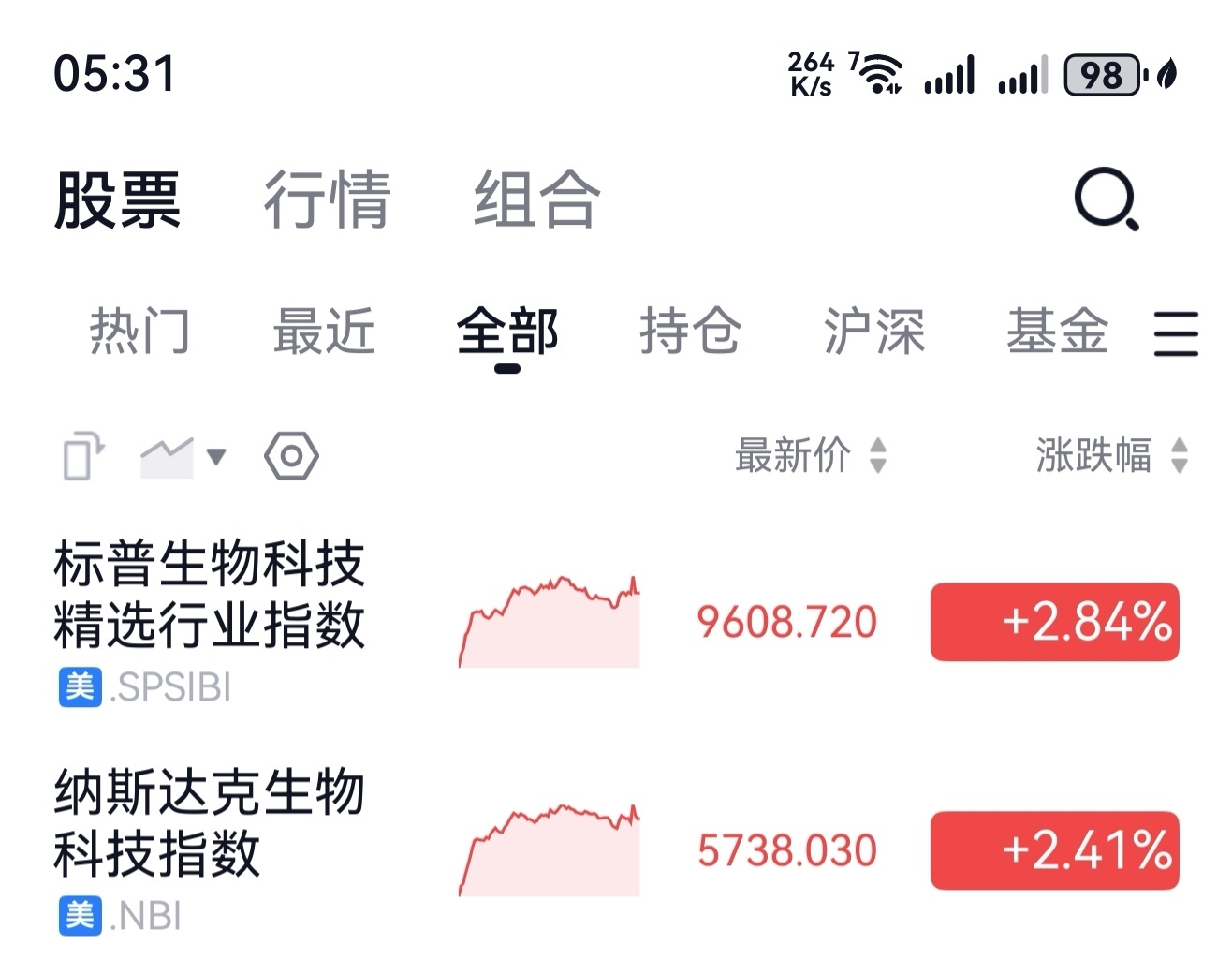 在今天周六早上,观察美股纳斯达克100指数、纳斯达克科技市值加权指数、标普生物科技精选行业指数,在昨天收盘分别是涨+1.31%、涨+1.79%、涨+2.89%。