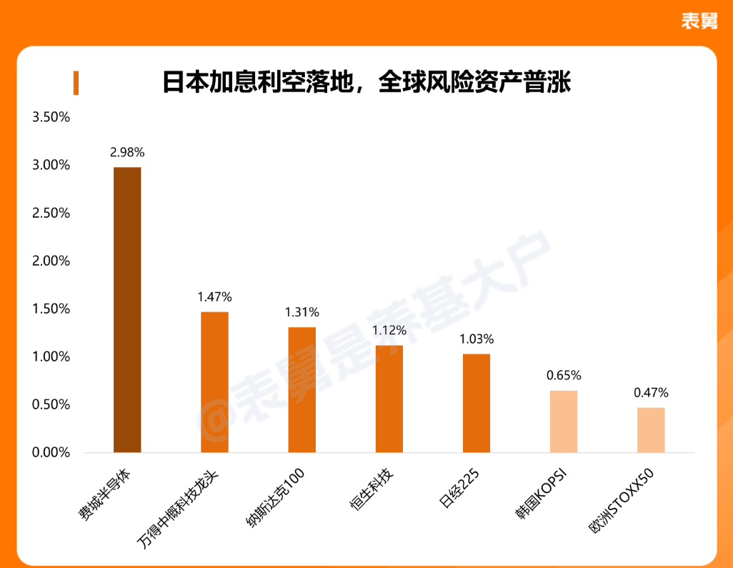 其一,对日本加息这个事,全球市场price in的比较充分(前期一直震荡),利空落地后,反而情绪走高了;