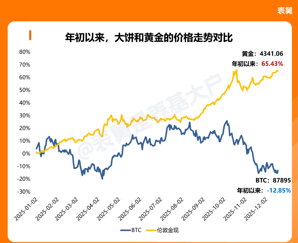 下图,是今年以来,黄金和大饼的走势图,可以看到,两者8月以来明显分化——而两者最大的区别之一,就在于黄金的购买者中,很大一部分是各国央行,而大饼不是。
