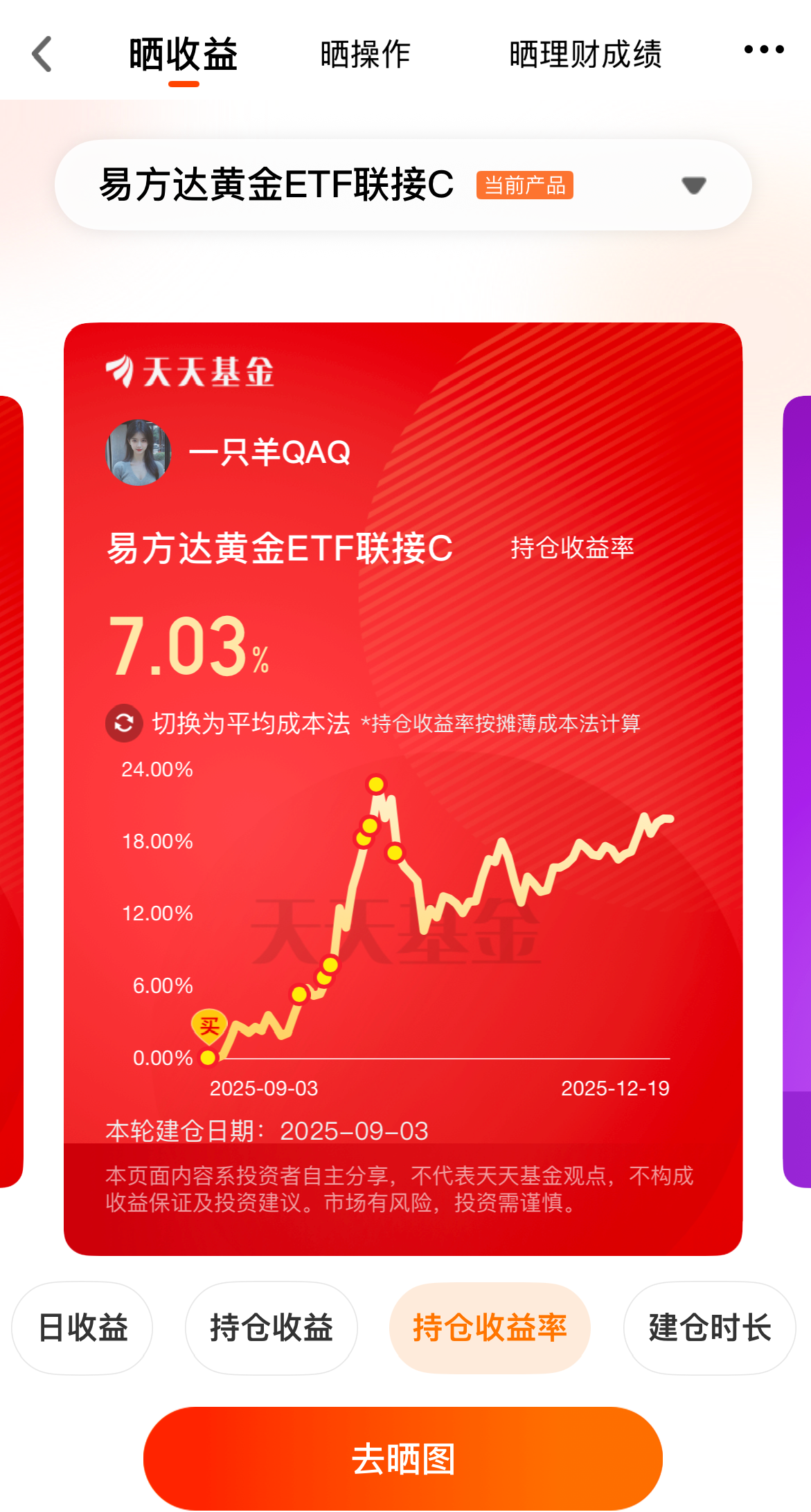 宝子们啊!今天就是贵金属的疯狂星期一!早上一起来,现货黄金新高,就按这个价格咱们早就1000了,奈何汇率不给力!我必须说,现在黄金高位入场的,风险是有的,小玩不要盲目追,回调了加更保险一些,短线着急的就等等吧,没必要这么着急。进仓之前要考虑自己能不能承受,能承受多少!我最不缺的就是耐心了,只要央行的购金需求还在,那么金价就有支撑,$易方达黄金ETF联接C(OTCFUND|002963)$继续稳住。