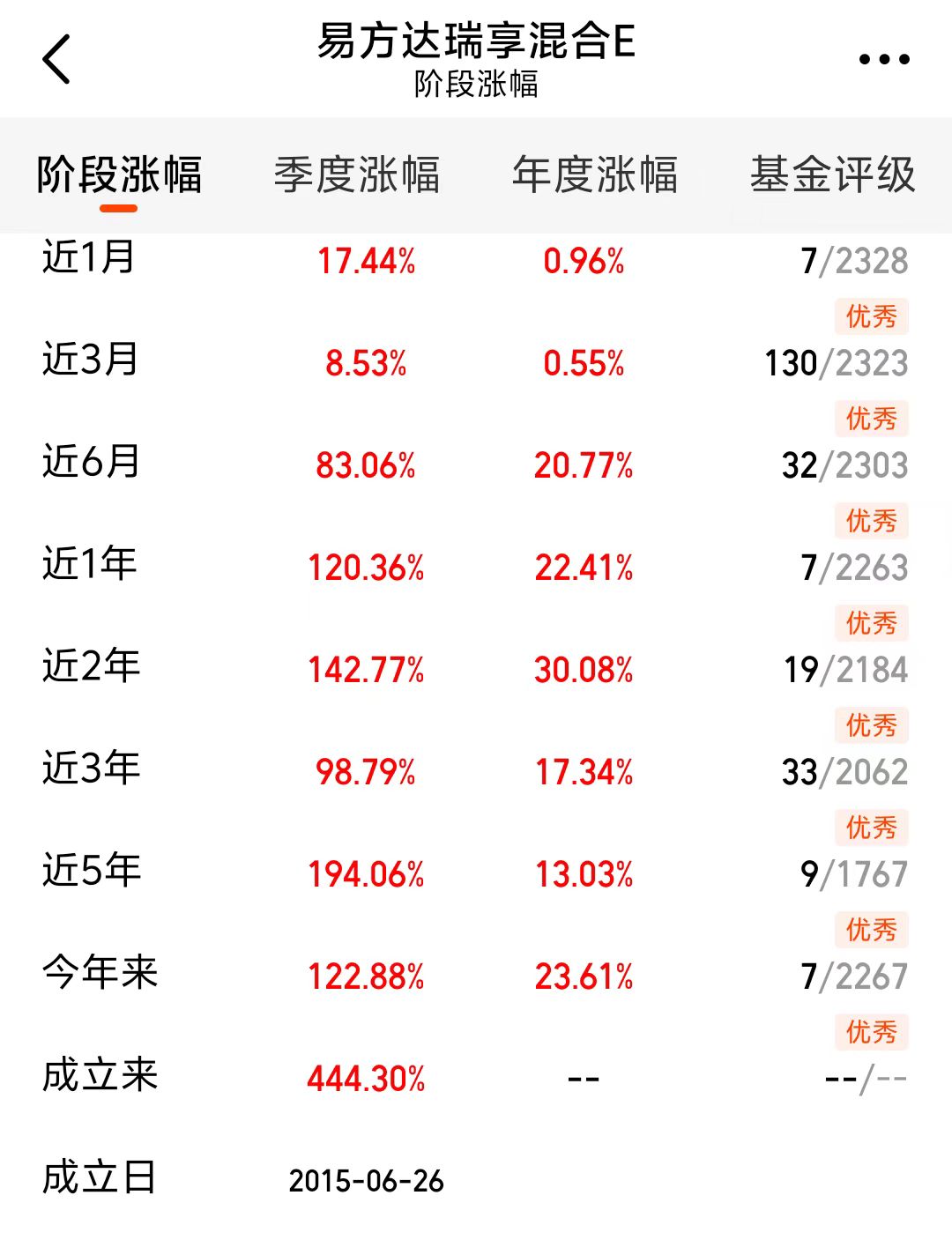大盘表现不错,今天继续上涨,科技等板块今天涨了不少,CPO板块今天大涨,易方达瑞享混合E近六个月涨了83.06%,近一年涨了120.36%,成立以来业绩已经翻了四倍了,经理调仓能力不错,看好这个方向,我准备分批布局了!