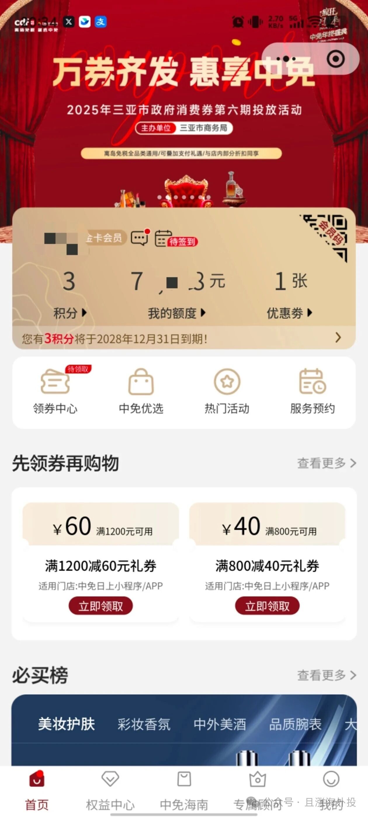 整体后续支付时候,对于身份证、机票的核验还是非常严格的,目前每人是有10万的额度,中免会员注册后可以看到消耗情况。