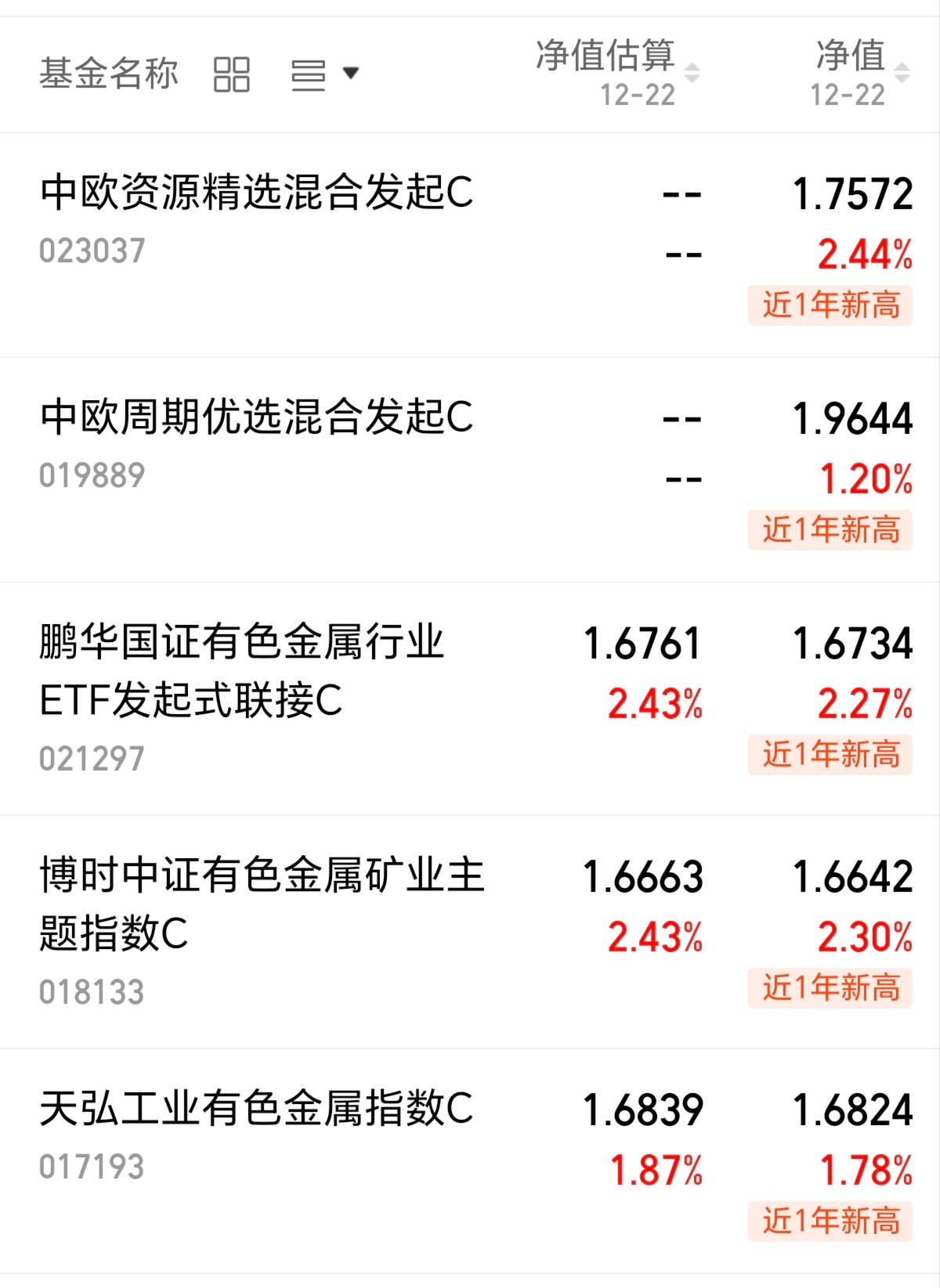 $天弘工业有色金属指数C(OTCFUND|017193)$涨幅1.78%