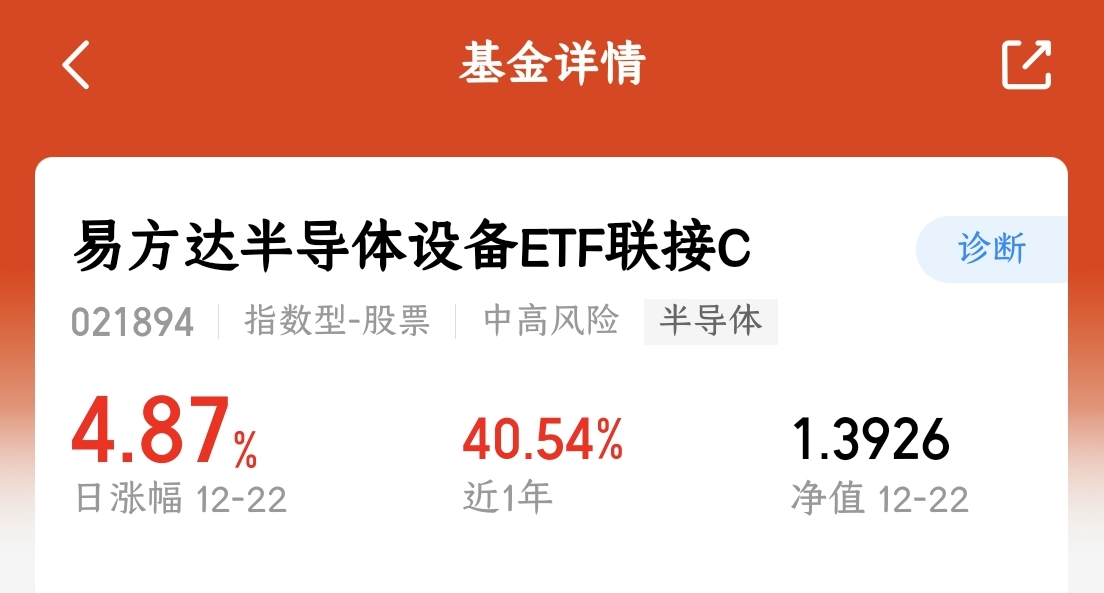 最近全球市场回暖,半导体设备市场呈现复苏态势,2025年第三季度出货金额同比增长11%,国内晶圆厂扩产潮带动设备需求攀升。当前国产设备国产化率仍低于30%,替代空间广阔。刻蚀、薄膜沉积等关键设备龙头已在先进制程实现突破,技术迭代加速驱动行业升级前景乐观。今天易方达半导体设备ETF联接C今日上涨4.87%,表现亮眼!
