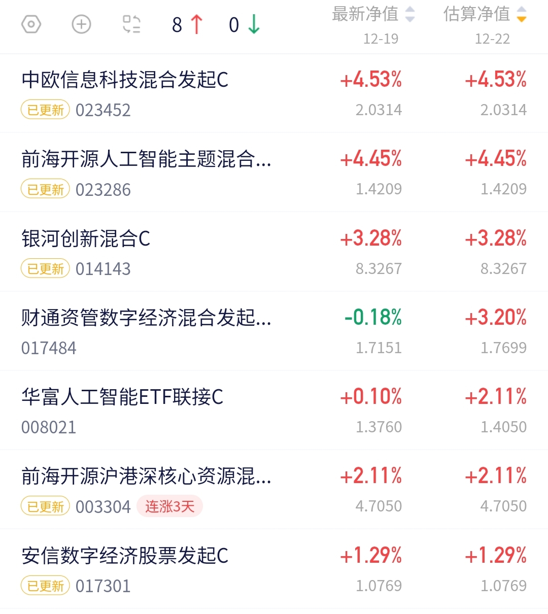 $中欧信息科技混合发起C(OTCFUND|023452)$今天收涨4.53%契合当前行情还是蛮香的~