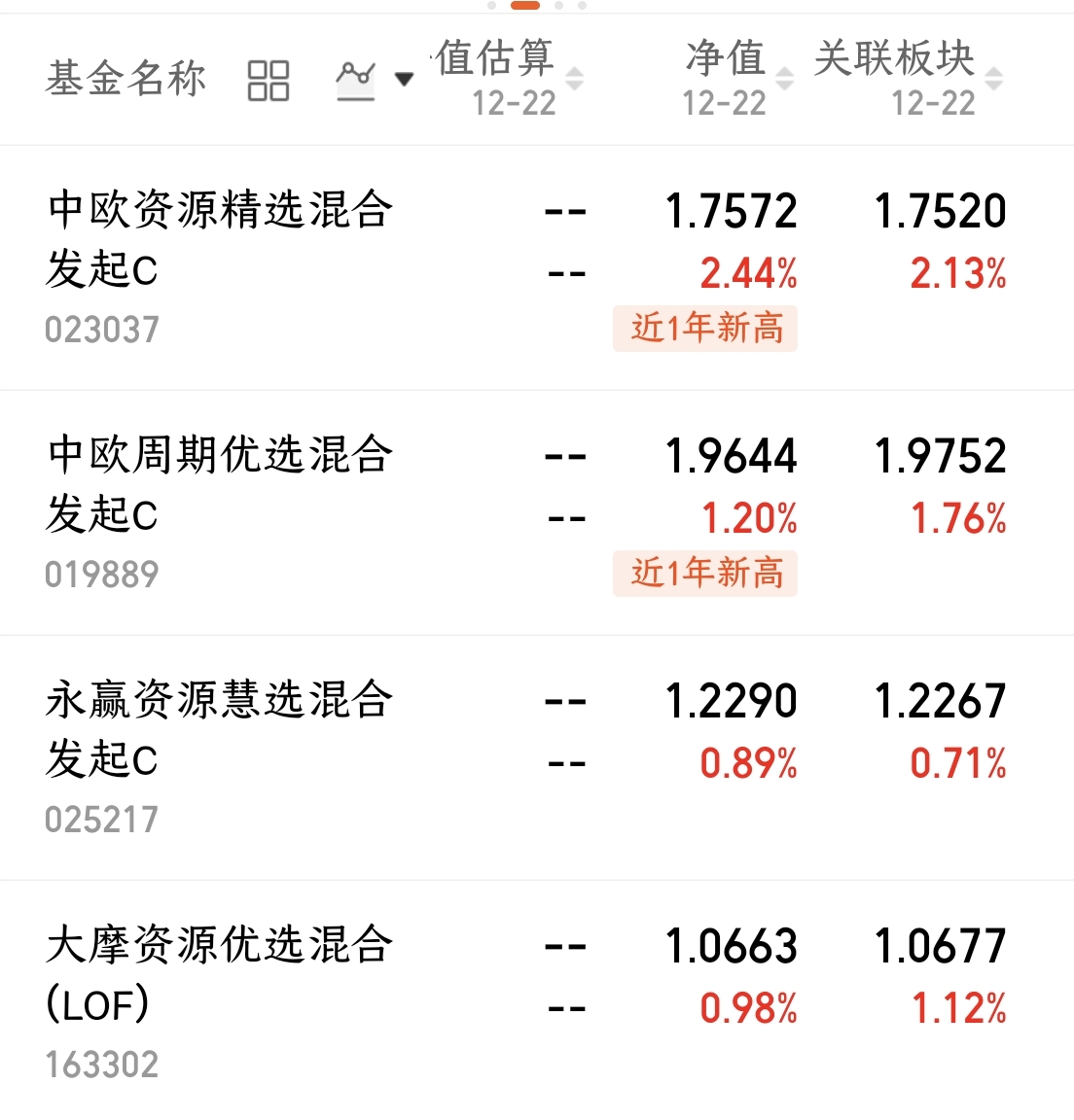 资源类周期股净值播报!