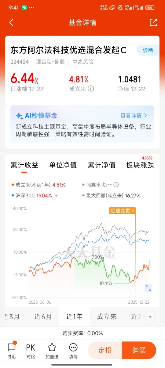 今天半导体板块彻底杀疯了,我持有的阿尔法科技优选直接大涨6.44%,在同类基金里