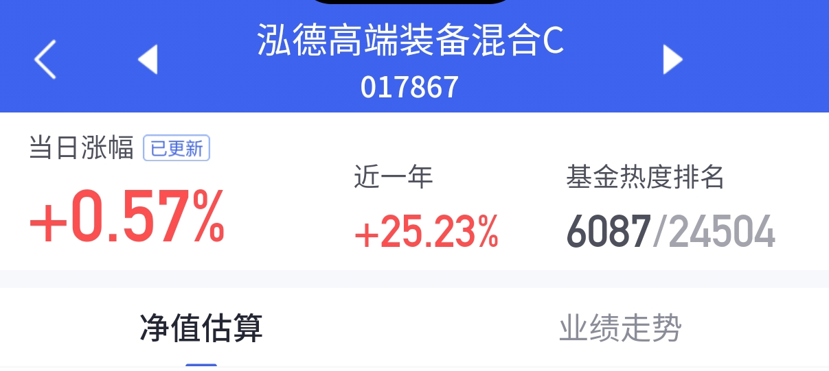 $泓德高端装备混合发起式C$ 更新了涨了0.57%