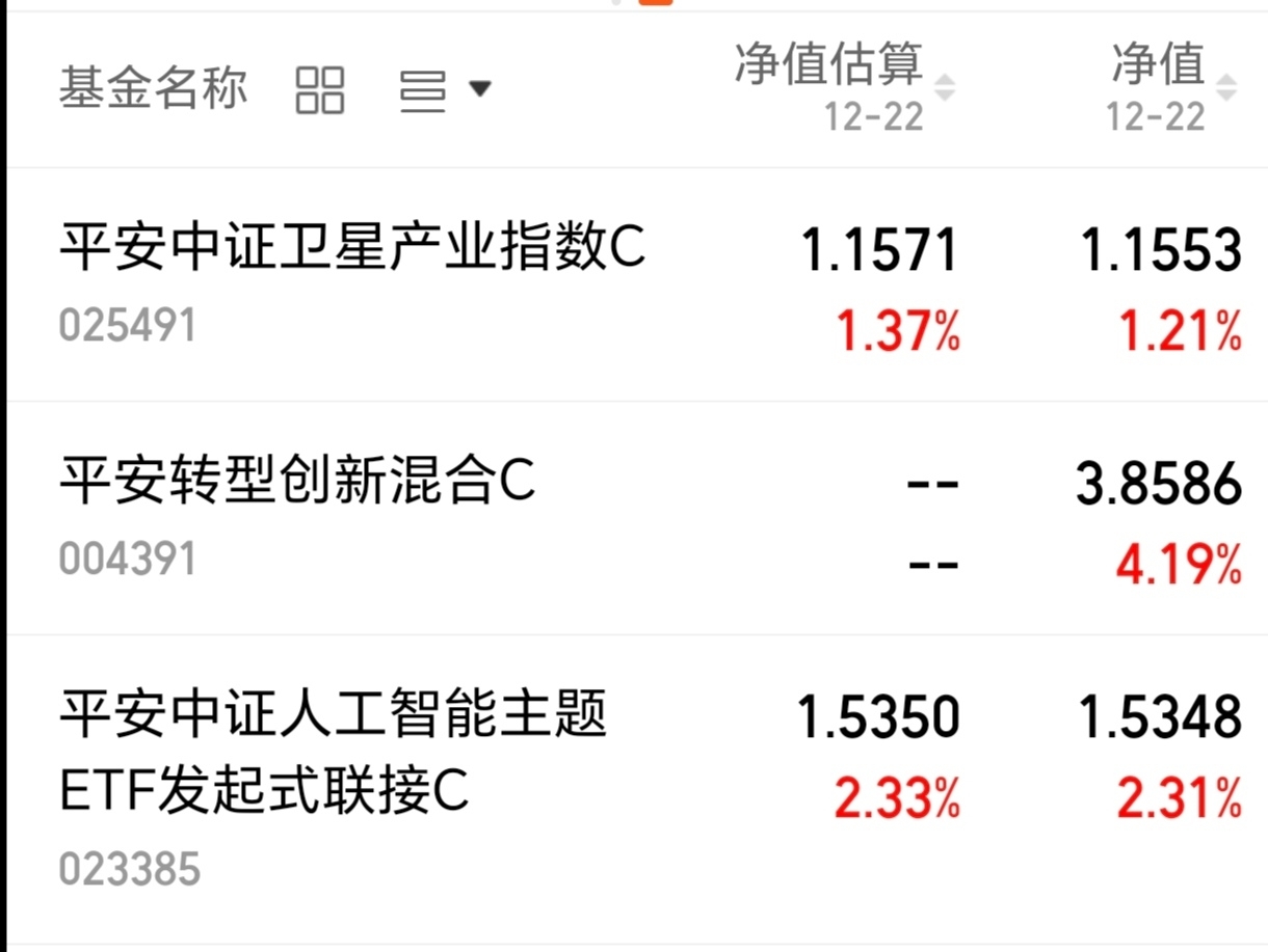 $平安中证卫星产业指数C$ $平安转型创新混合C$ $平安中证人工智能主题ETF发起式联接C$