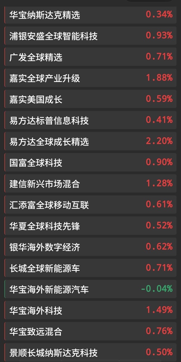 涨2.2%。是美基最靓的仔!华宝纳斯达克精选涨0.34%,是最落魄的明星基金!