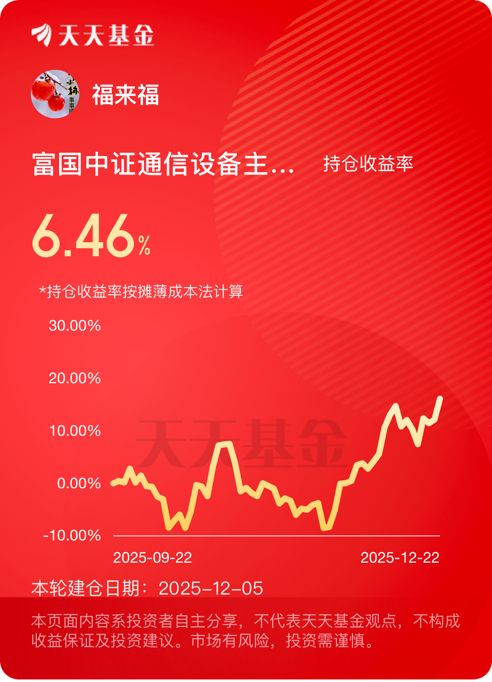 持仓大概率有航天股,纯通信应该会涨更多,但未来也许更好,期待中……$富国中证通信设备主题ETF发起式联接C$
