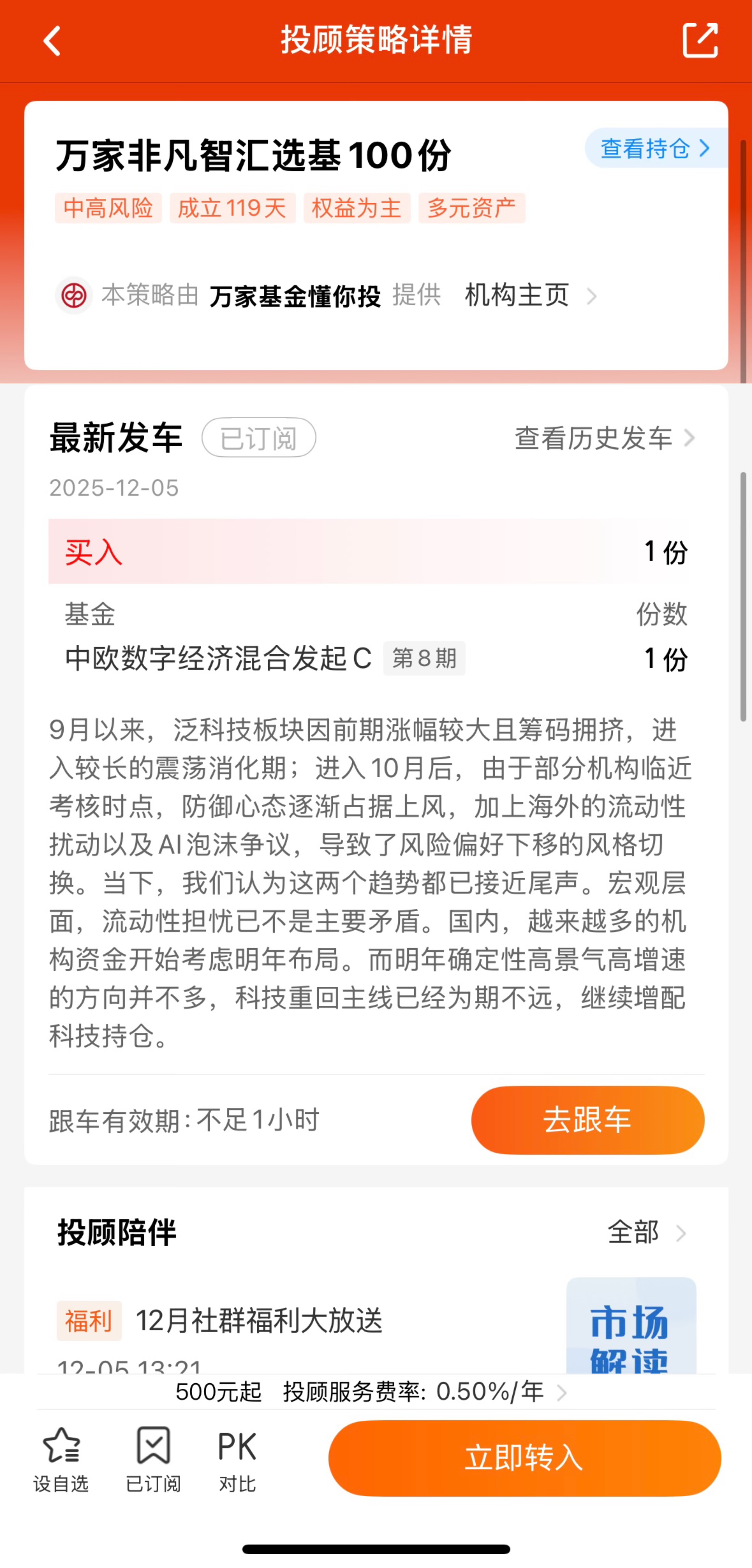 大家可以点击一下这里的链接$万家非凡新质驱动$,$万家非凡均衡小目标$,$万家非凡稳享全天候$, $万家非凡智汇选基100份$然后 【订阅】 一下我们的发车提醒,每次发车都能收到短信提醒。